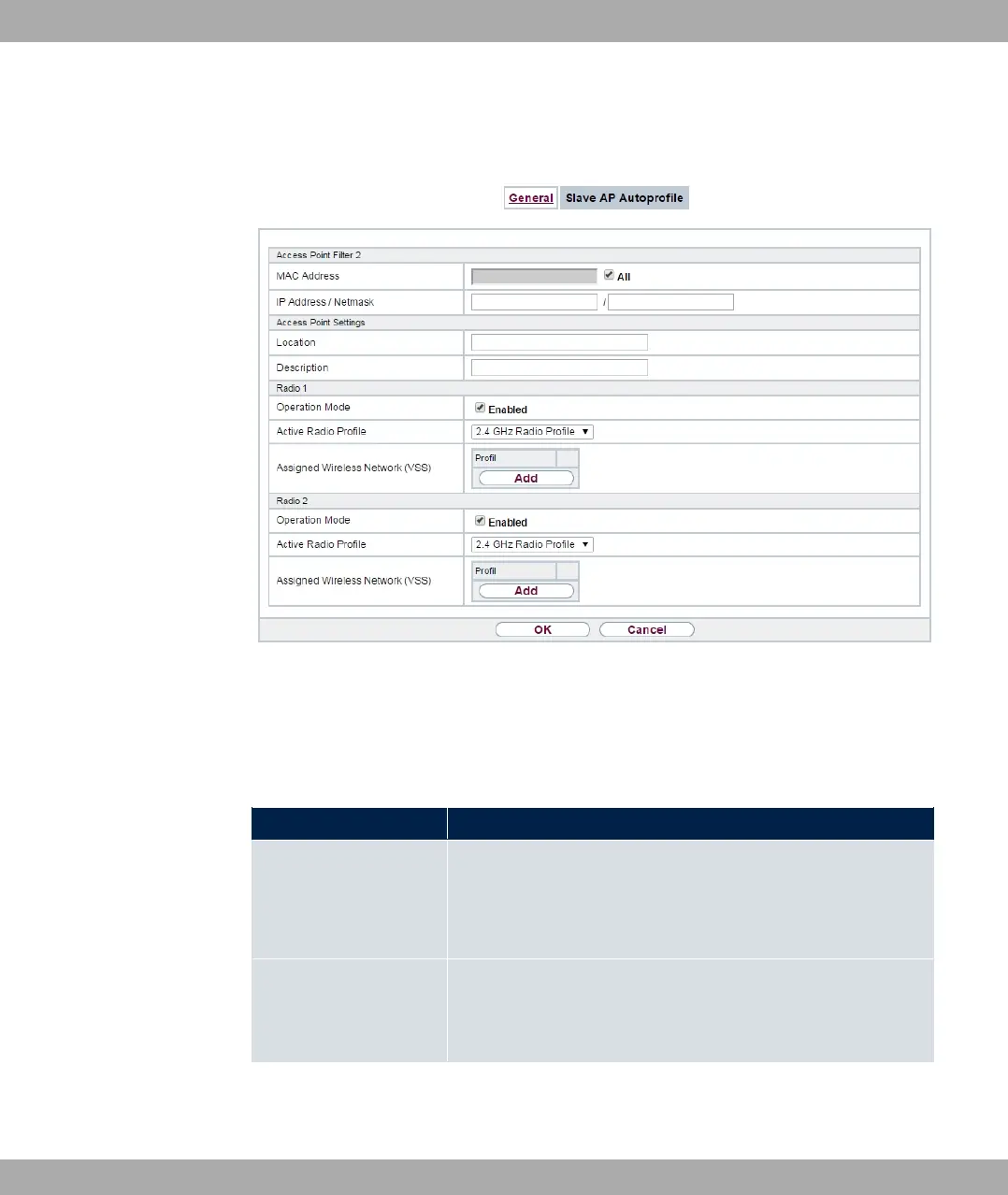 Fields in the Access Point Filter menu