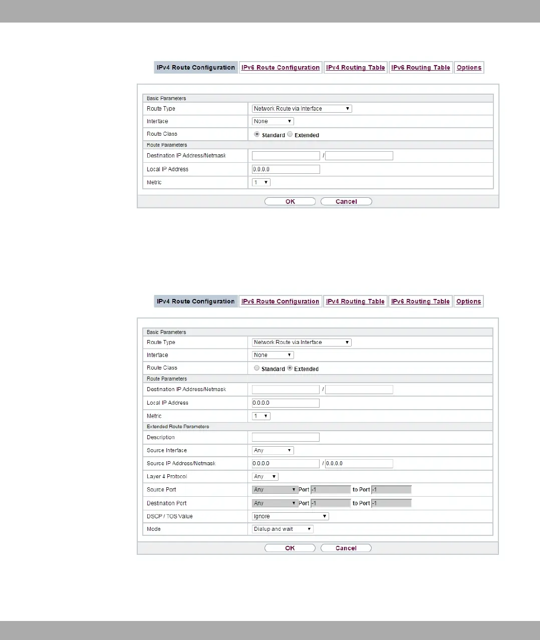 Fig. 93: Network->Routes->IPv4 Route Configuration->New with Route Class = ?