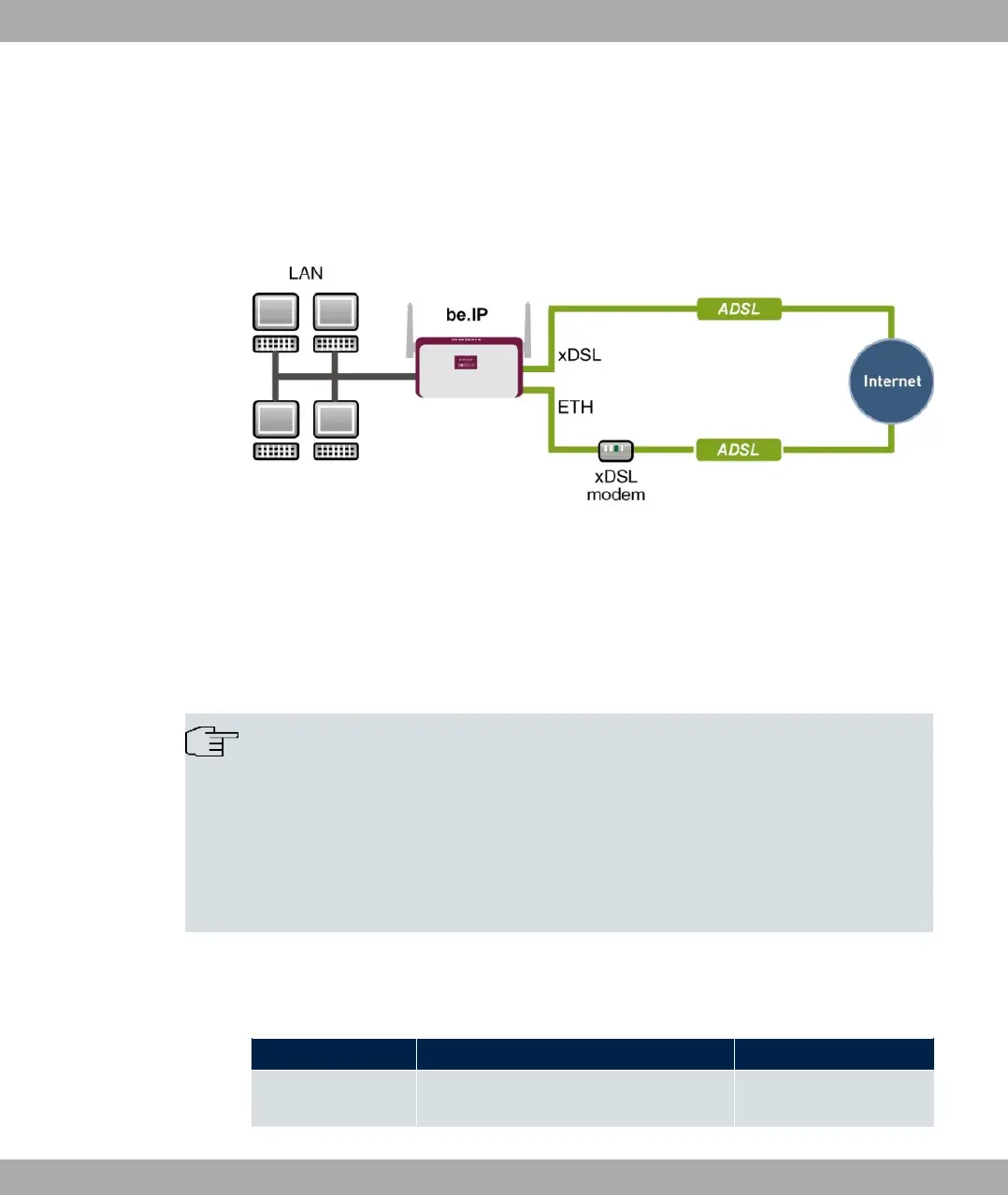 • The data traffic is distributed half and half to the two ADSL lines based on IP sessions.