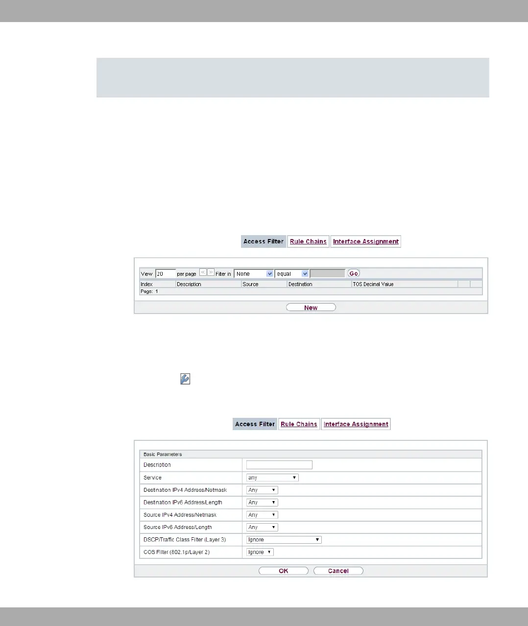 This menu is for configuration of access filter Each filter describes a certain part of the IP
