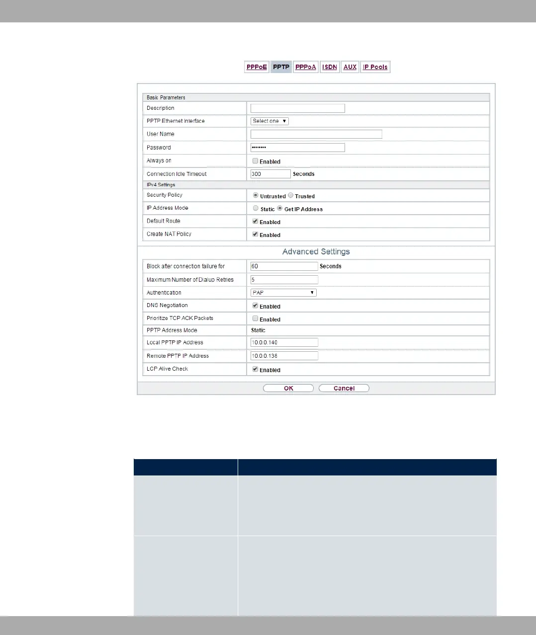 Fig. 125: WAN->Internet + Dialup->PPTP->New