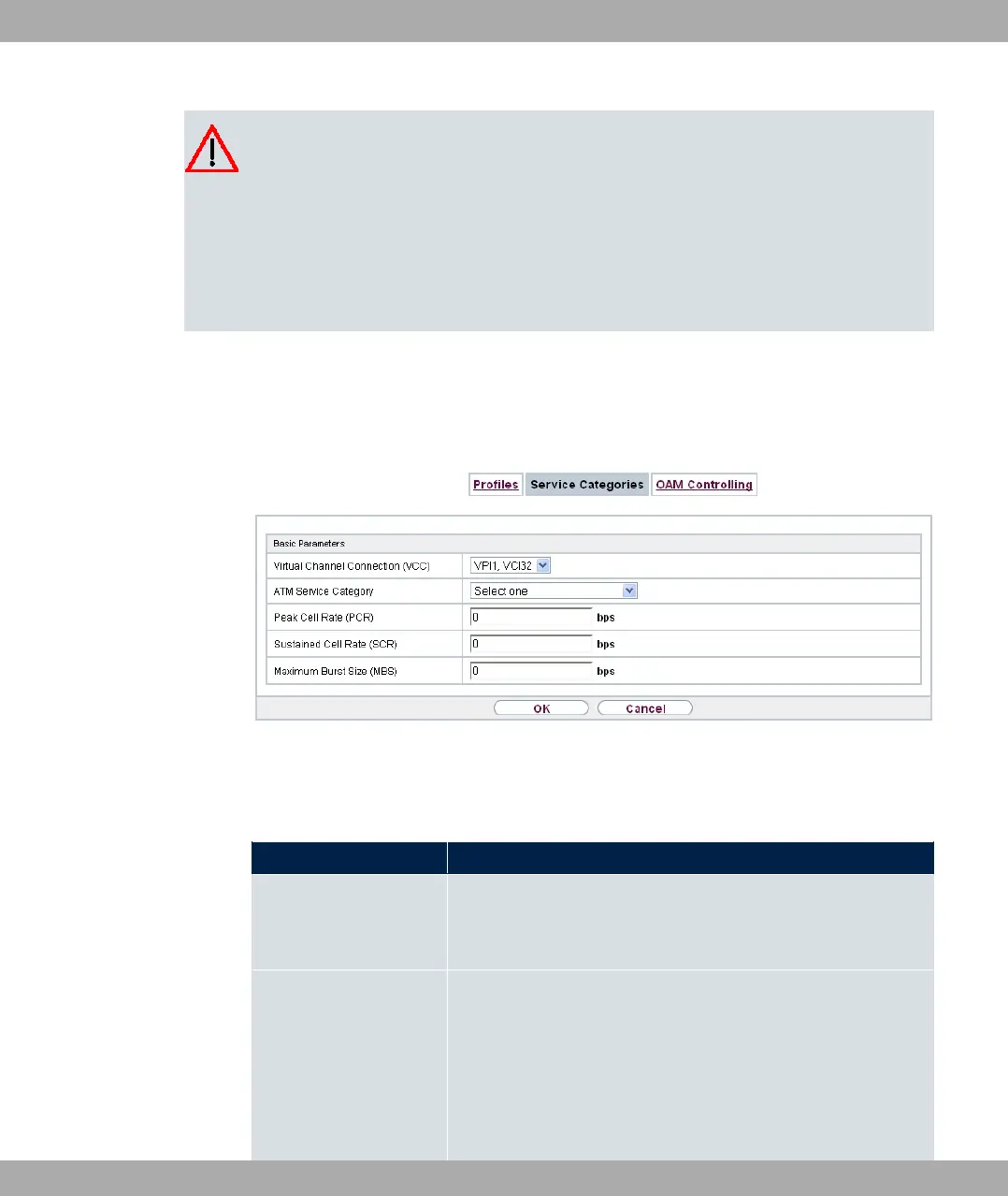 ATM Service Category Select how the data traffic of the ATM connection is to be con-