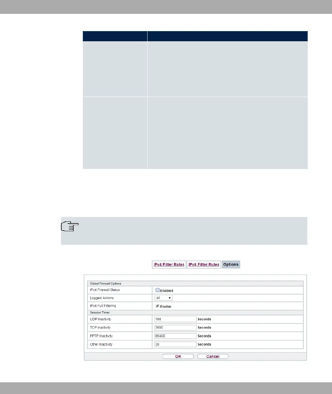 In this menu, you can disable or enable the IPv4 firewall and can log its activities. In addi-