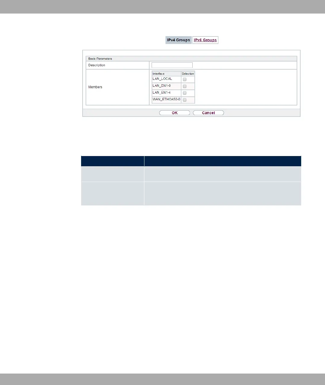 Description Enter the desired description of the IPv4 interface group.