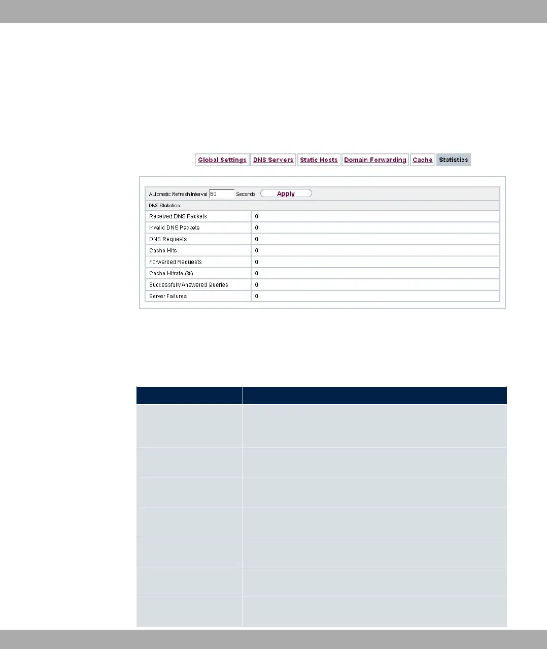 In the Local Services->DNS->Statistics menu, the following statistical values are dis-