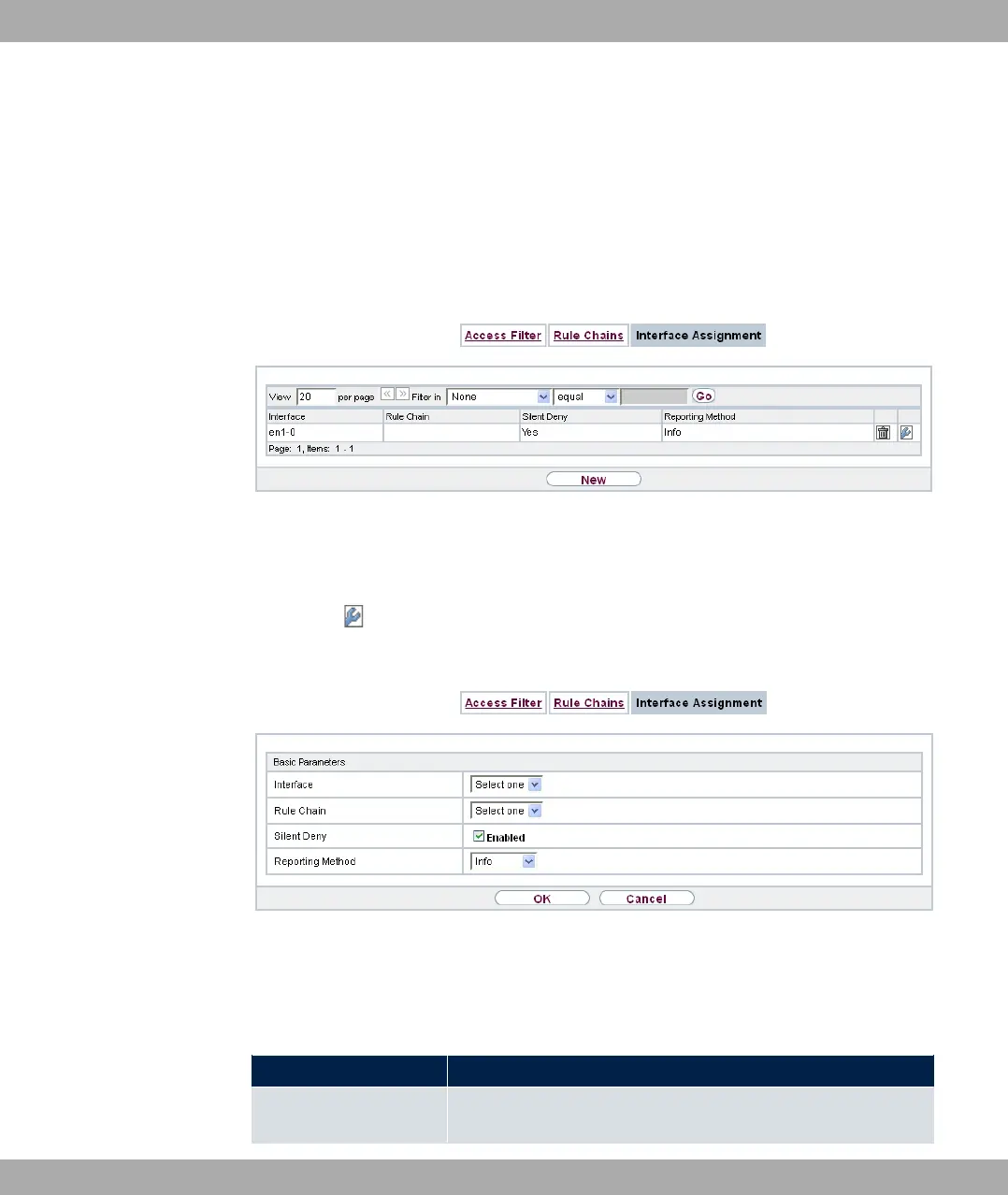 In this menu, the configured rule chains are assigned to the individual interfaces and the