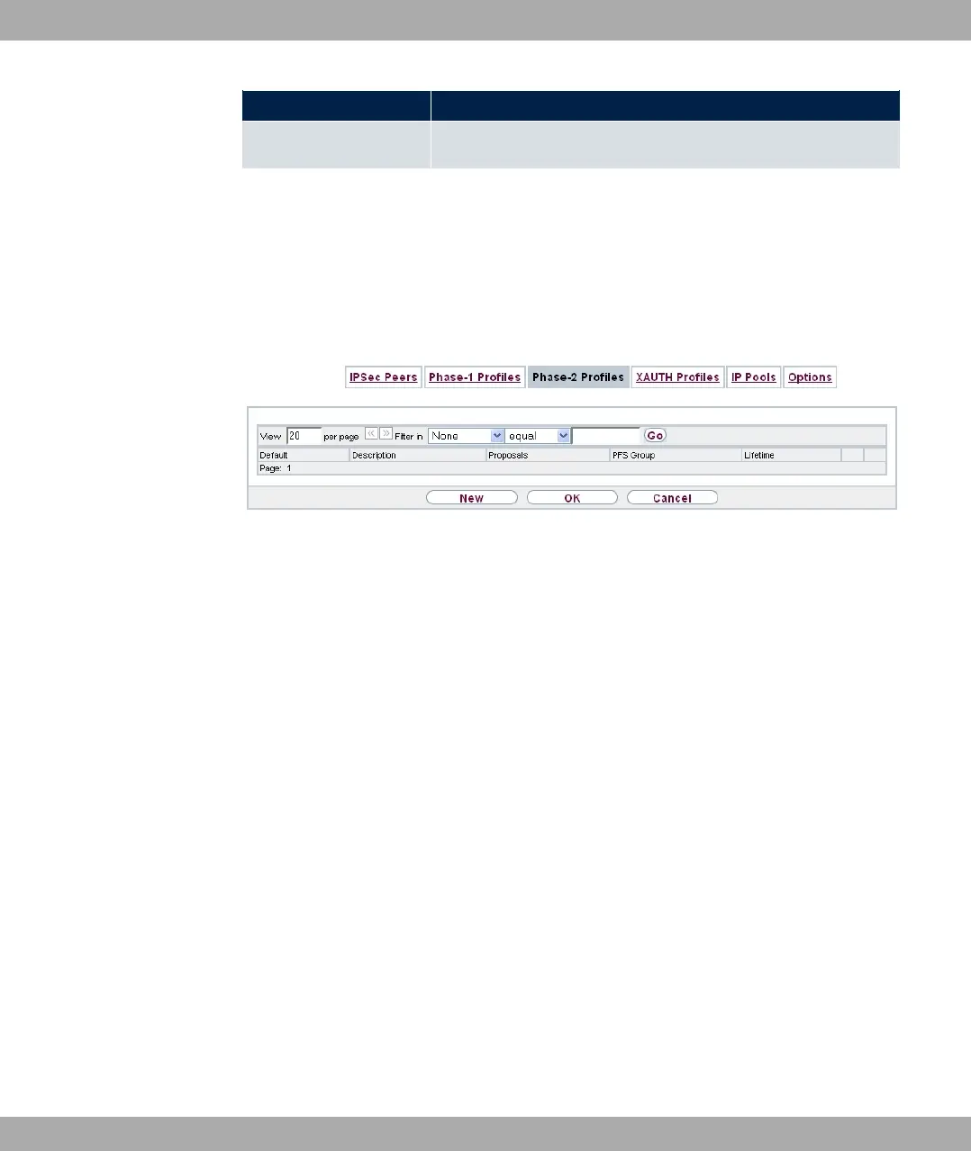 In the VPN->IPSec->Phase-2 Profiles menu, a list of all configured IPSec phase 2 profiles