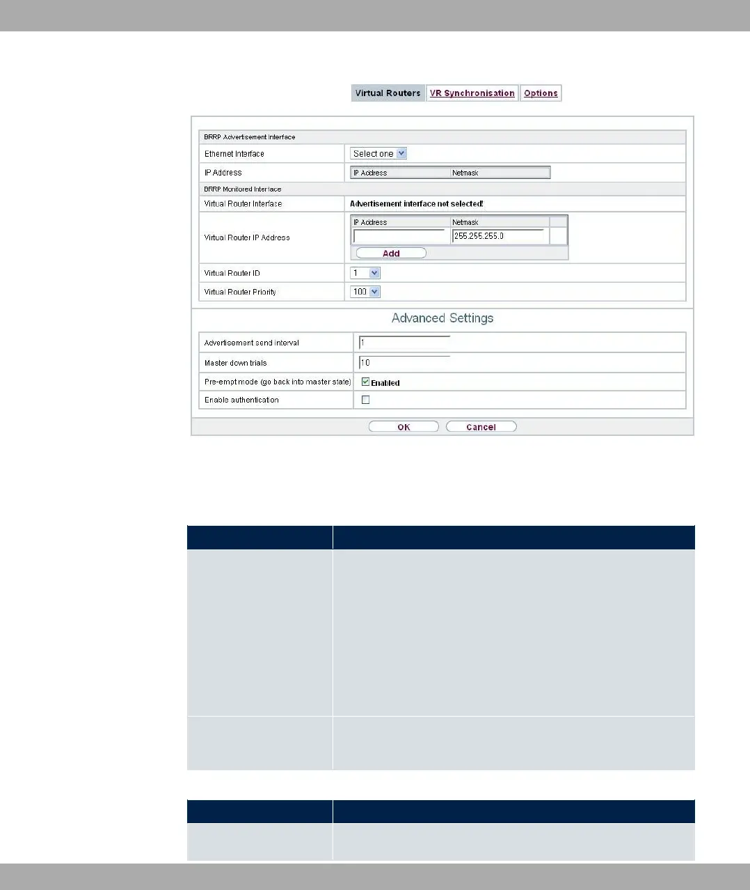 Ethernet Interface Choose the interface via which BRRP advertisement packets