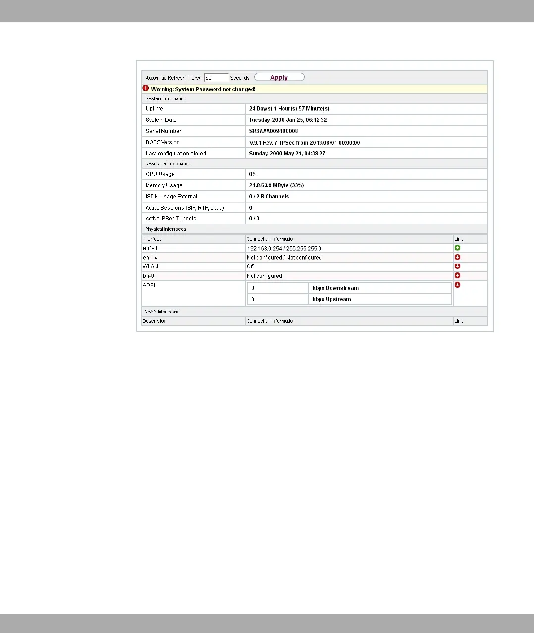 You are not in the status menu of your device's GUI (see Status on page 81).