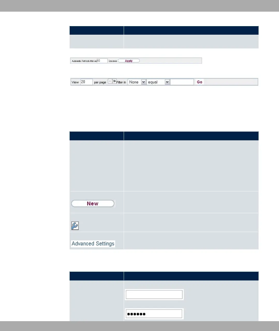Sub-menu The New button is available in each menu in which a list of all