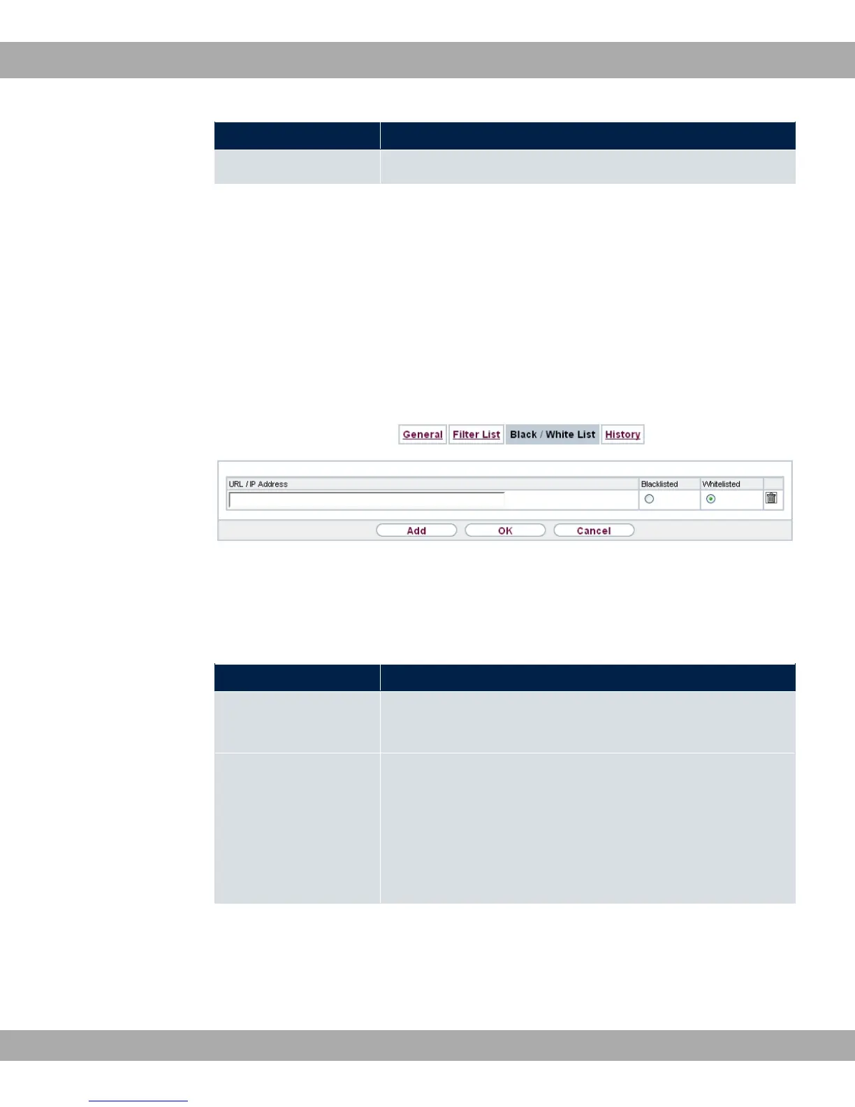 web filter. The addresses on the Black List remain blocked even if they could be called
