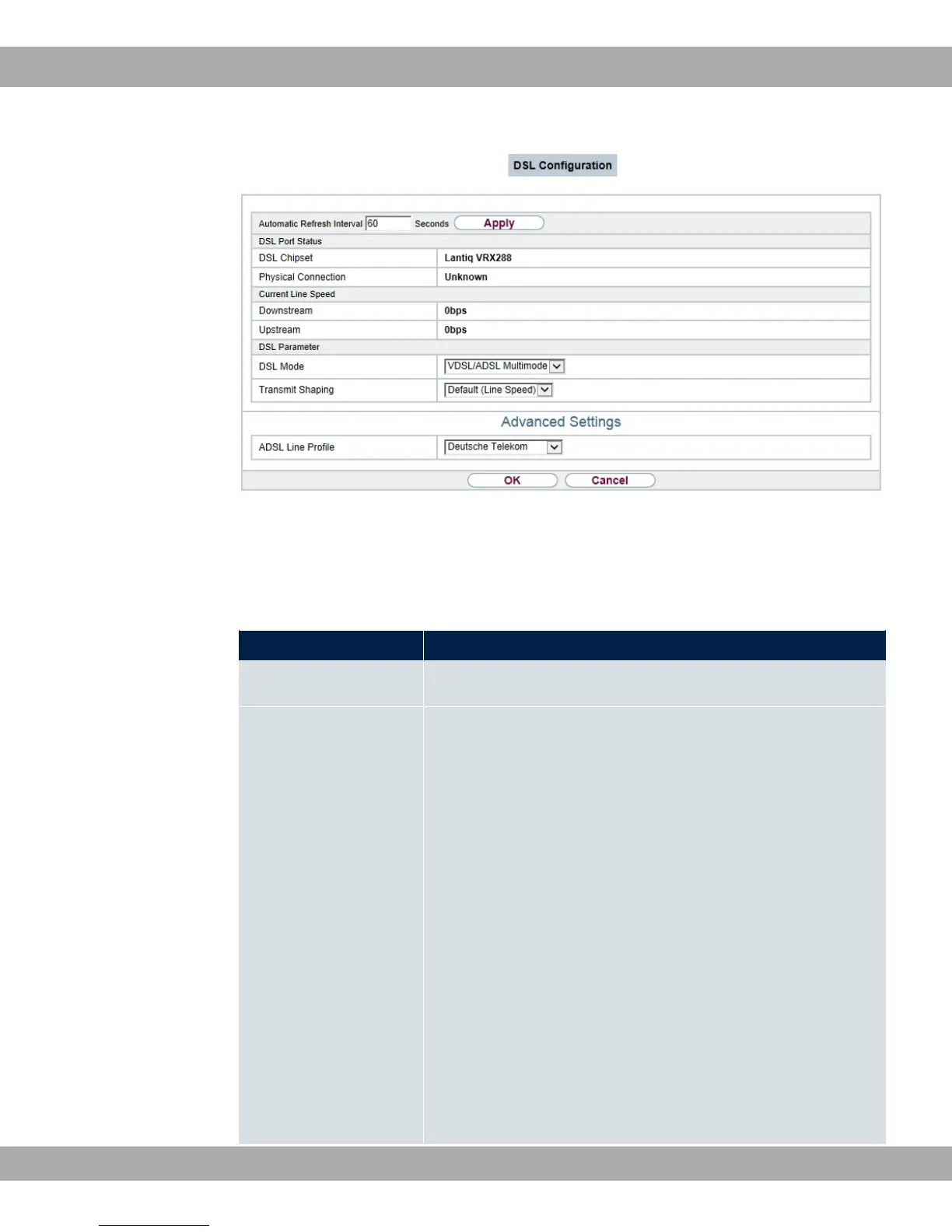 Fig. 49: Physical Interfaces->DSL Modem->DSL Configuration