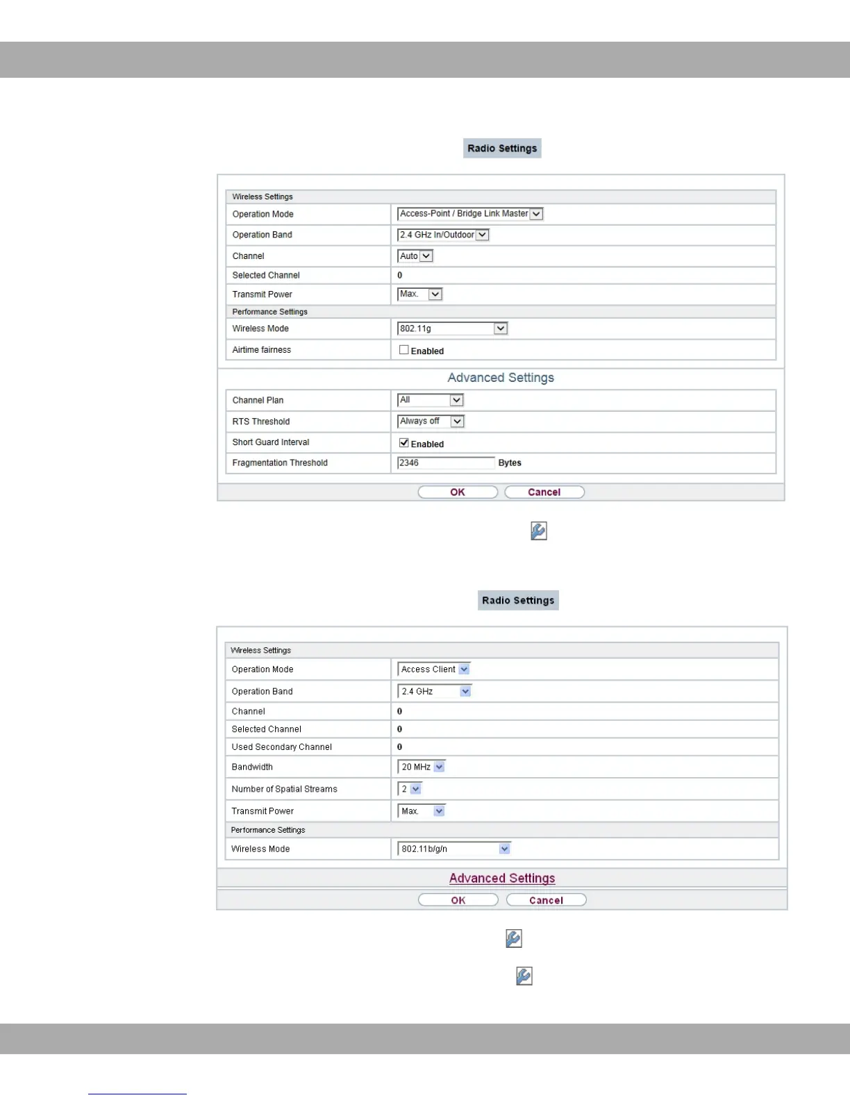 Fig. 58: Wireless LAN->WLAN->Radio Settings-> for Operation Mode 3%% 