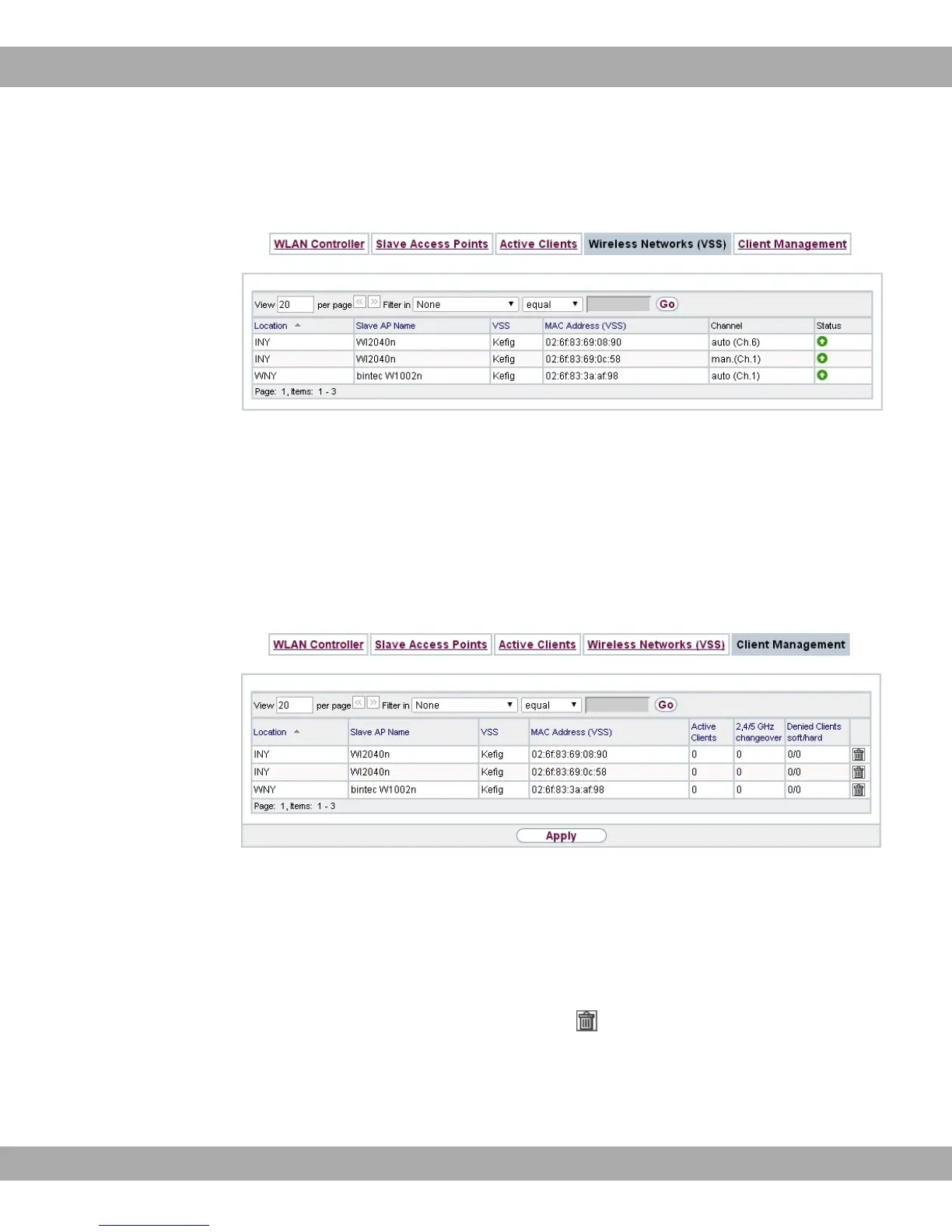 tion on the client management by the access points. You can, e.g., see the number of con-