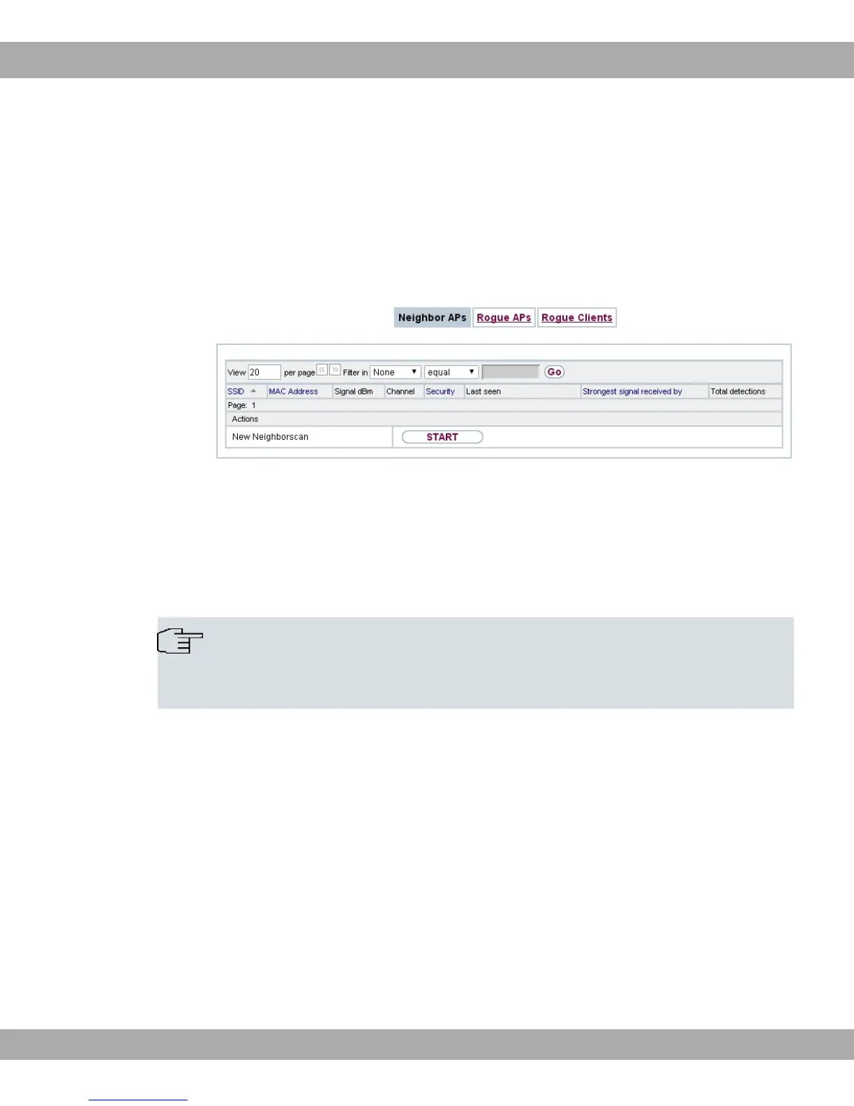 cent AP's found during the scan are displayed. Rogue APs, i.e. APs which are not man-