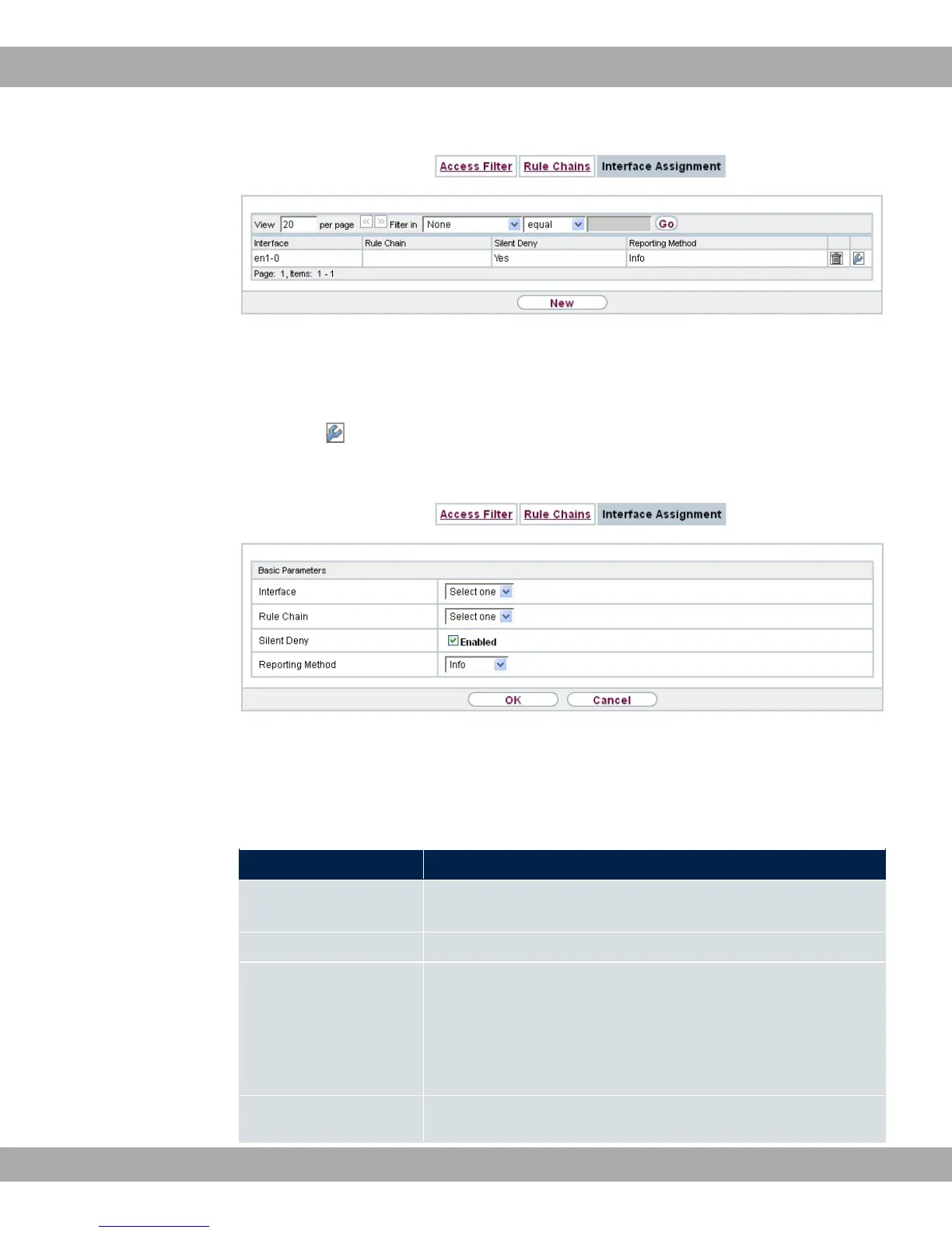 Interface Select the interface for which a configured rule chain is to be as-