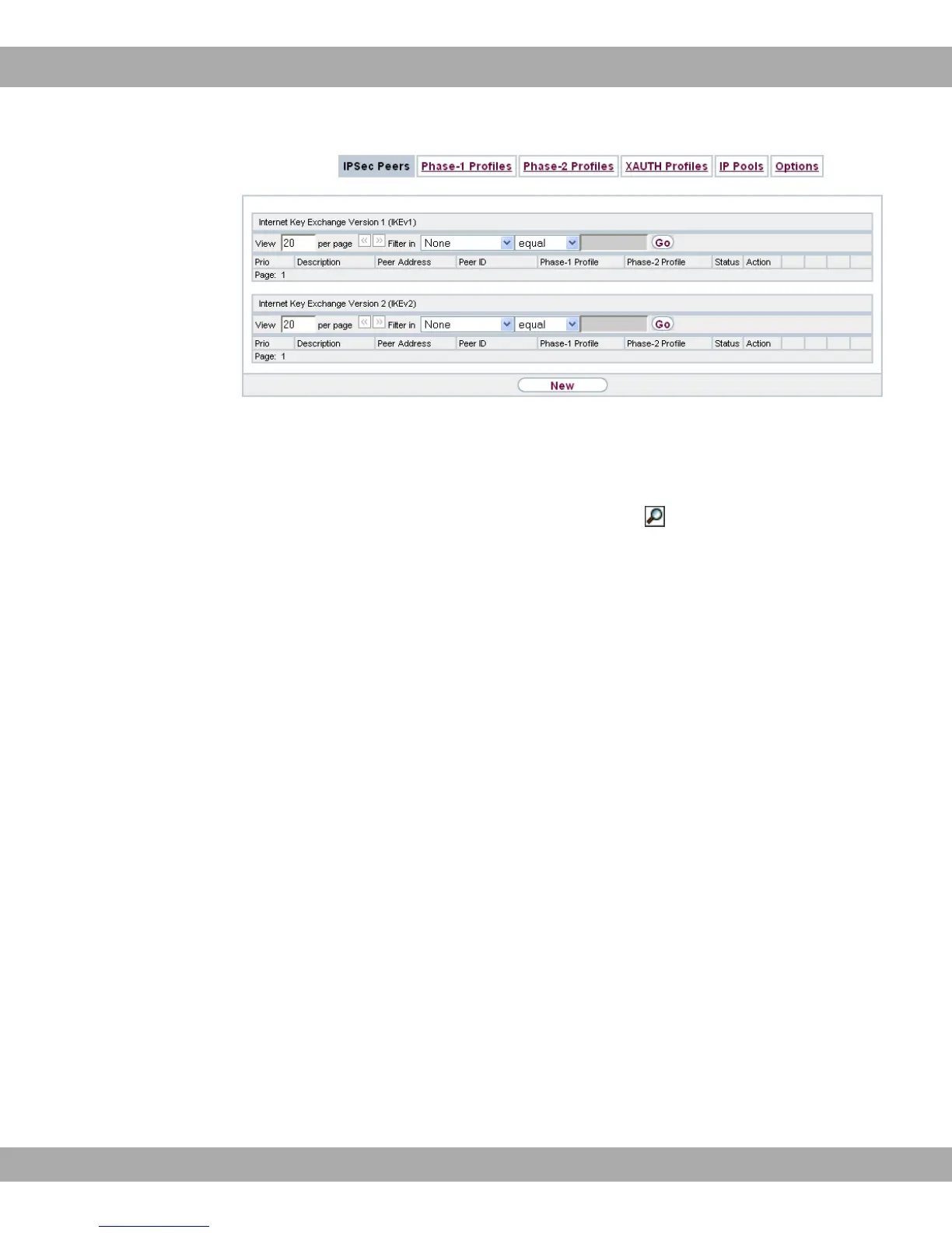 The menu for monitoring a peer is called by selecting the button for the peer in the peer