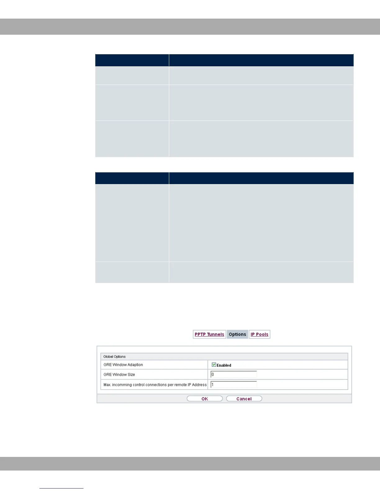 The VPN->PPTP->Optionsmenu consists of the following fields: