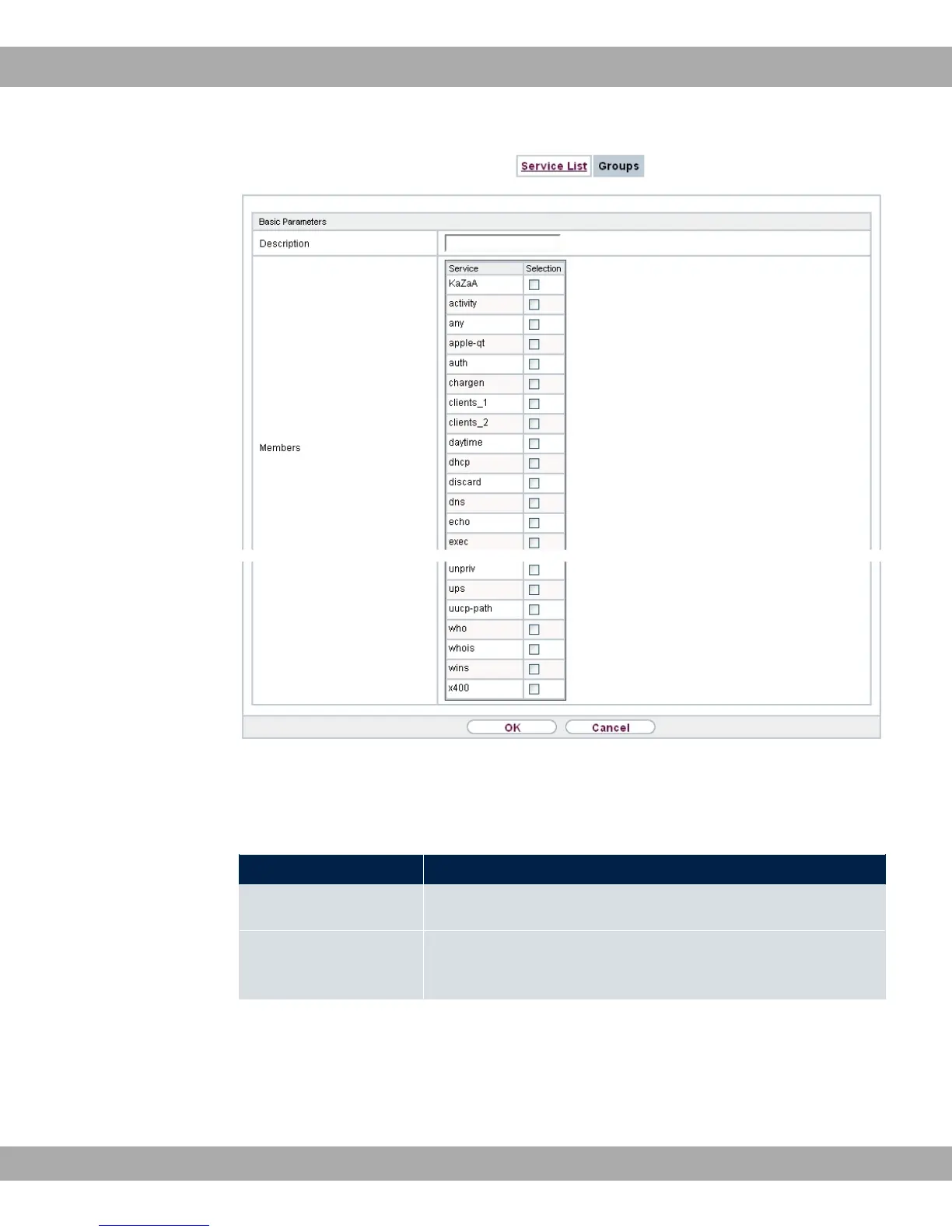 Description Enter the desired description of the service group.