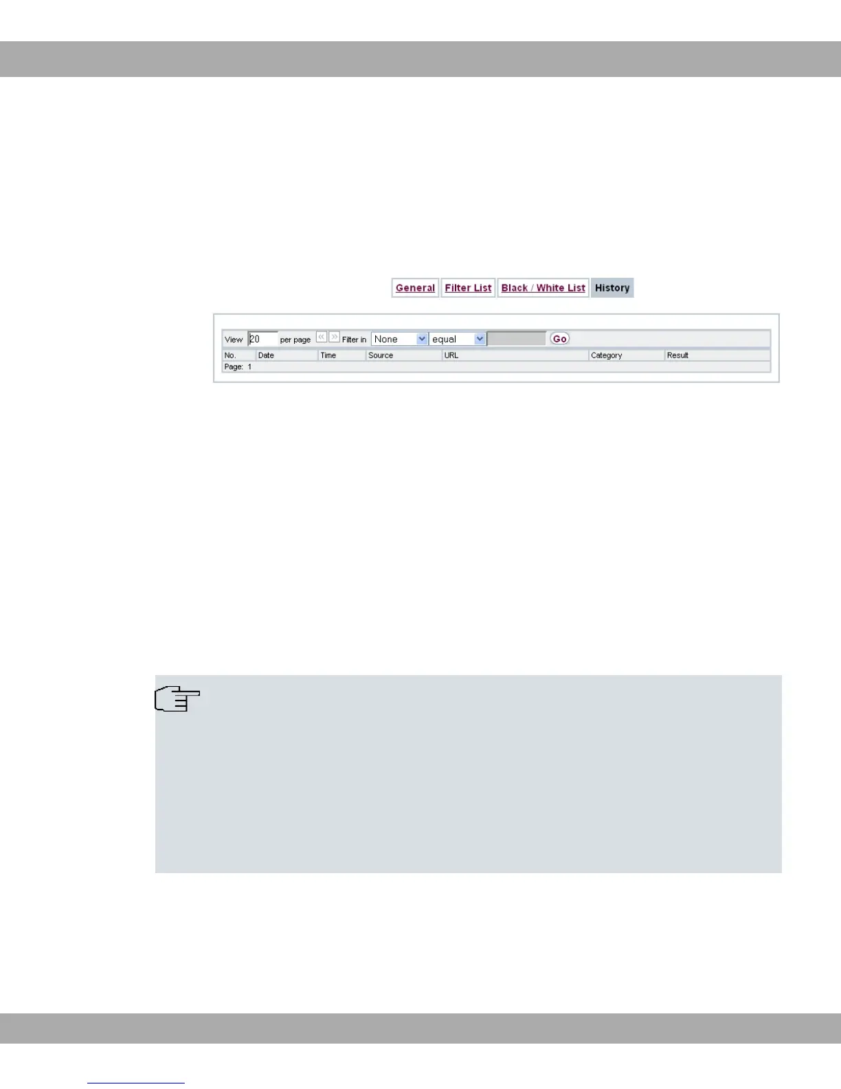 the web filter. The history logs all requests that are marked for logging by a relevant filter