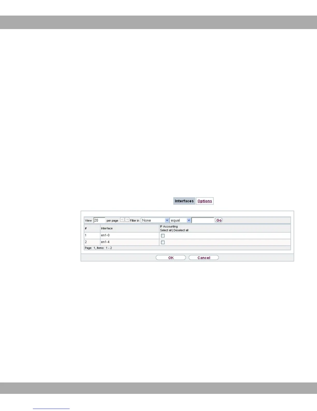 In this menu, you can configure the IP Accounting function individually for each interface.
