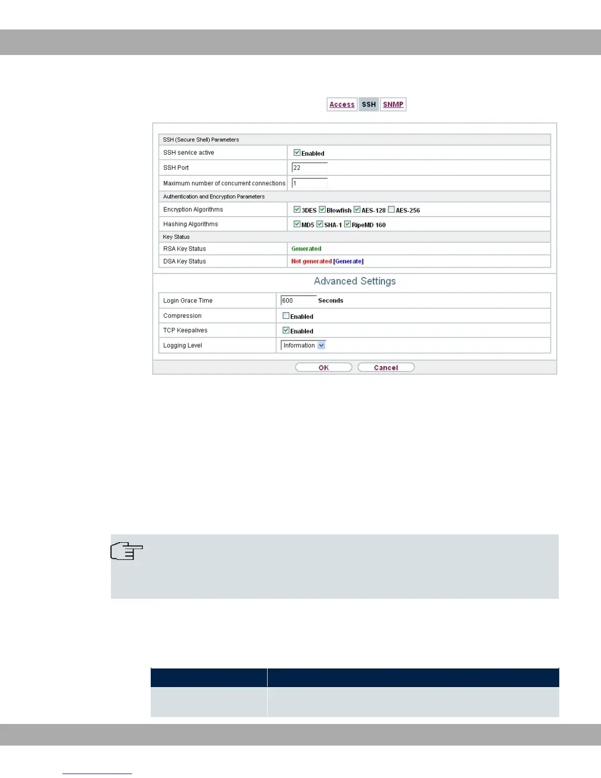 If configuration of an SSH connection is not possible, restart the device to initialise the