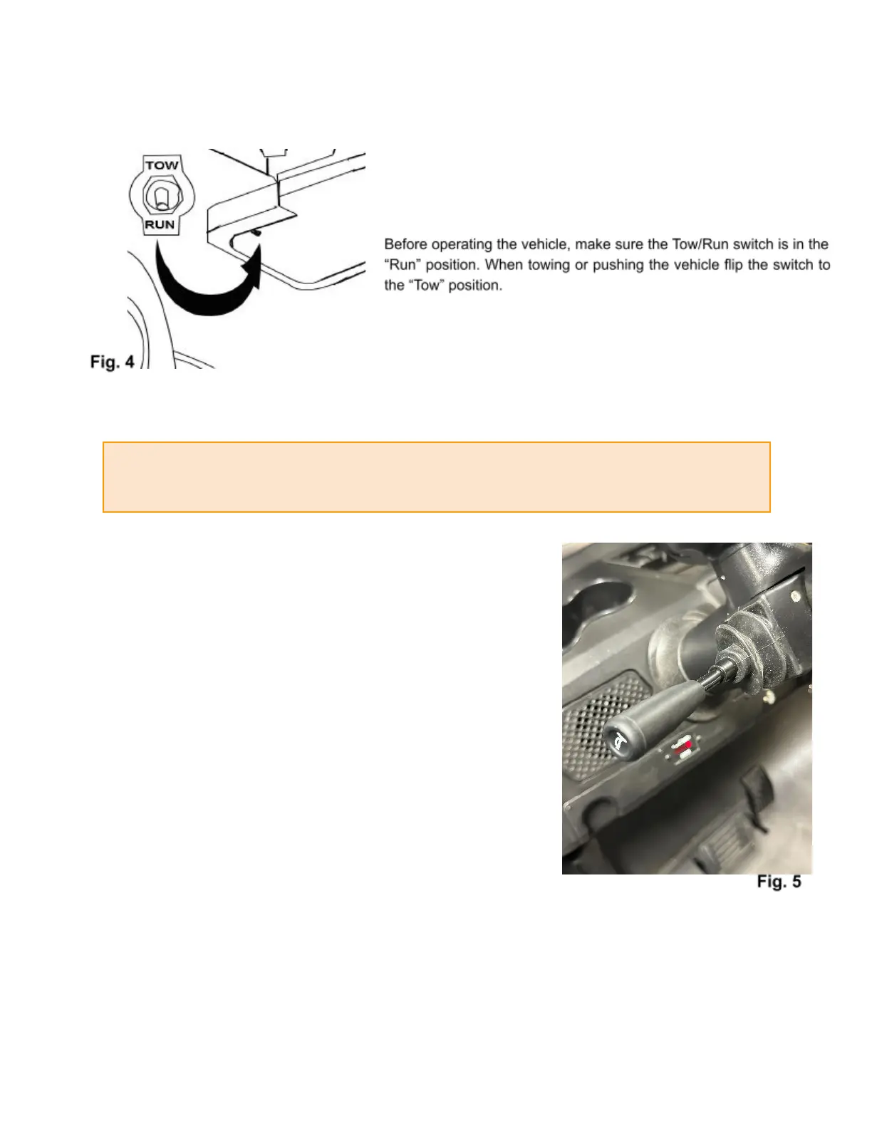 Pushing or towing the vehicle while in the “Run” position will burn up the motor and the electrical