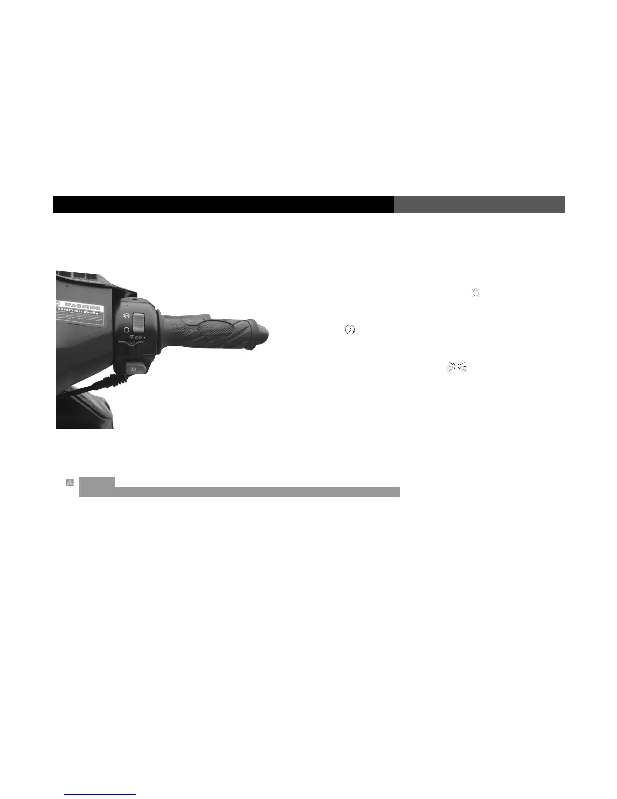 To use, turn the Head Light switch to the position “ ”, the headlight will turn