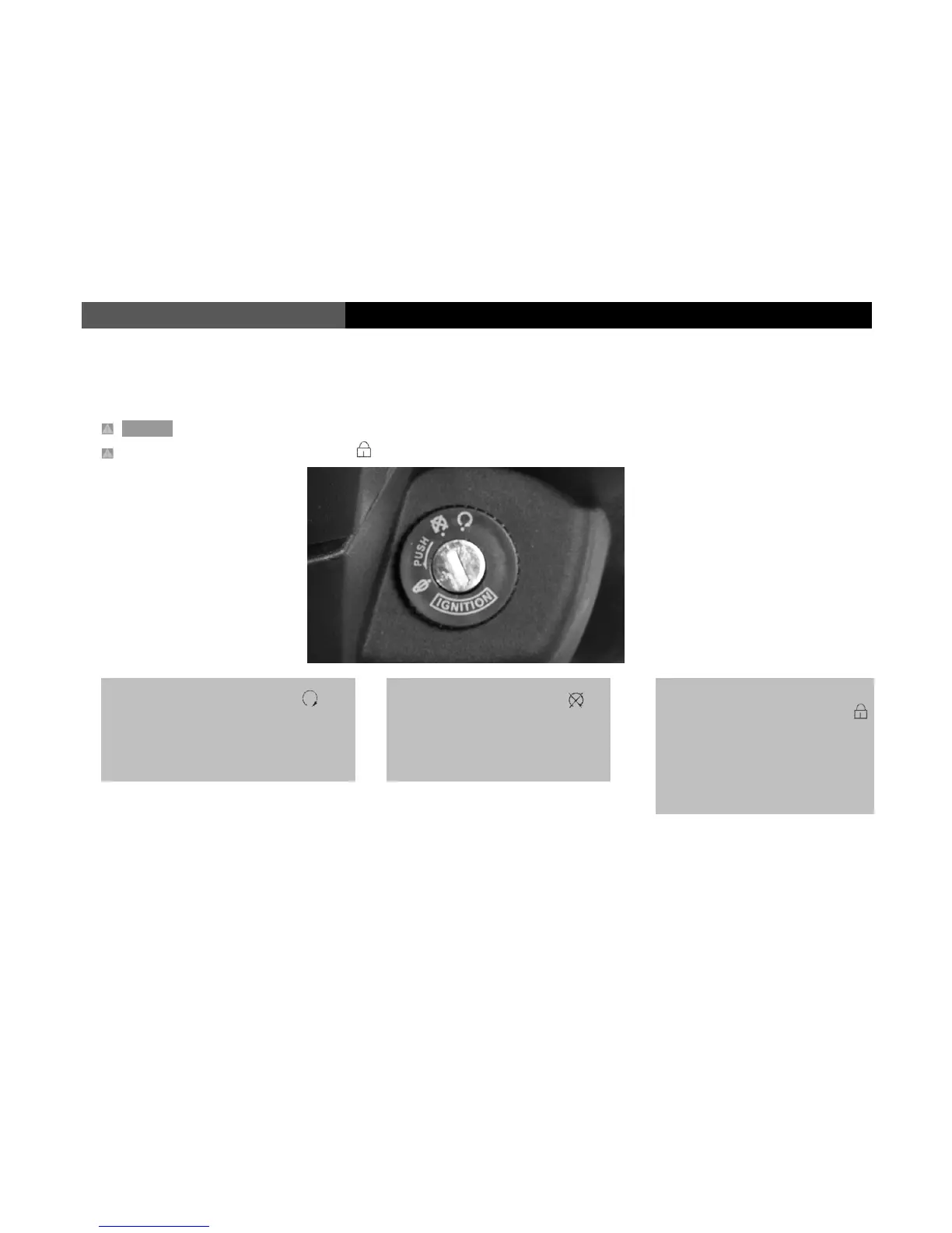 When leaving the vehicle parked, using the “ ” to lock the steering will help deter thefts and prevent the vehicle from being driven.