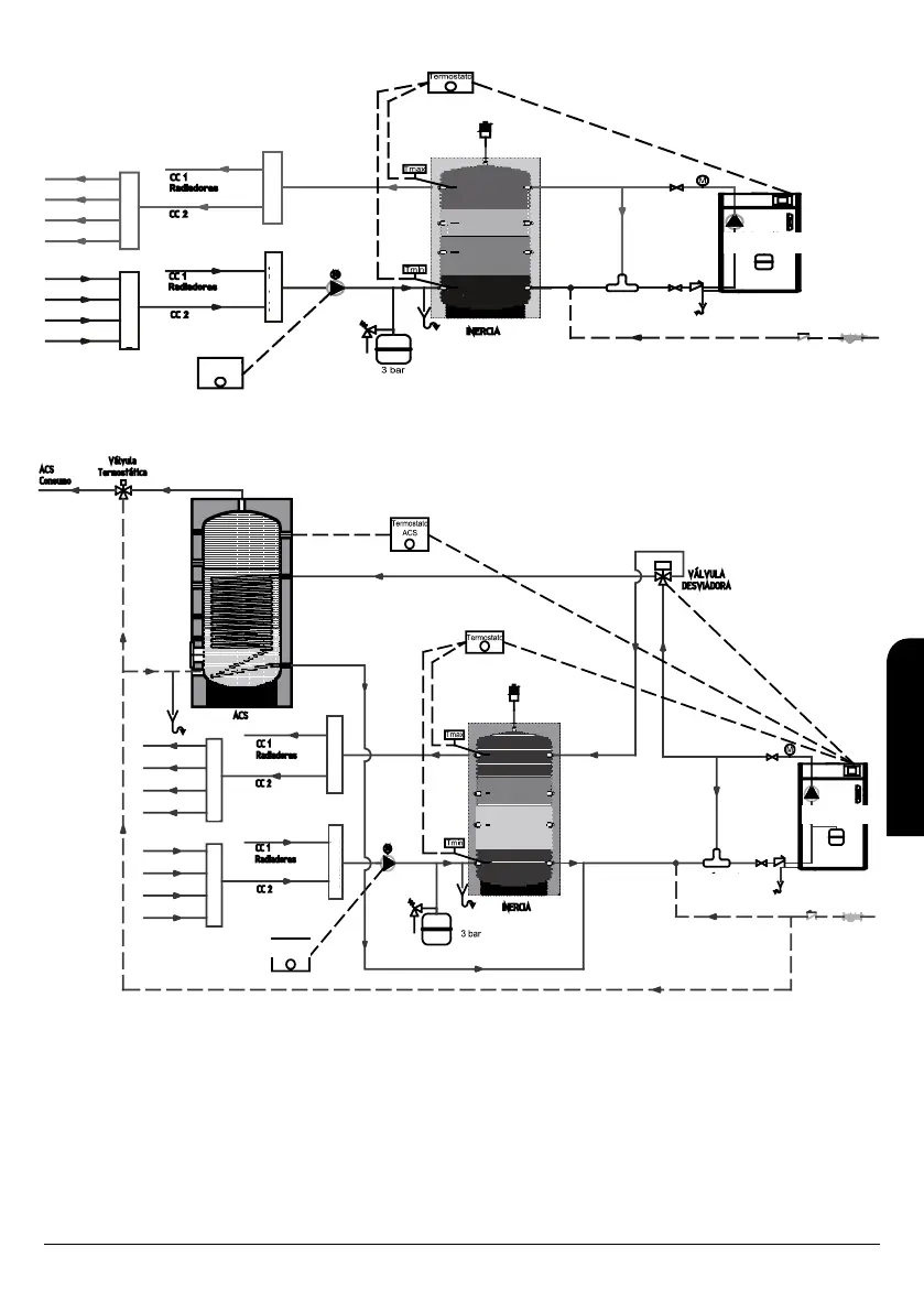Caldeira + Depósito de Inércia + Depósito de AQS + Circuito de Radiadores / Circuito de Piso Radiante