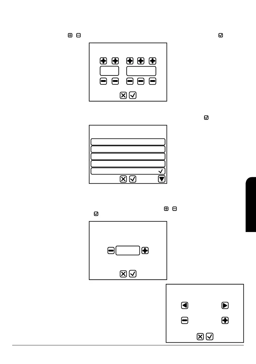 valores deve pressionar as teclas e em valor crescente ou decrescente respetivamente e confirmar o valor com a tecla .