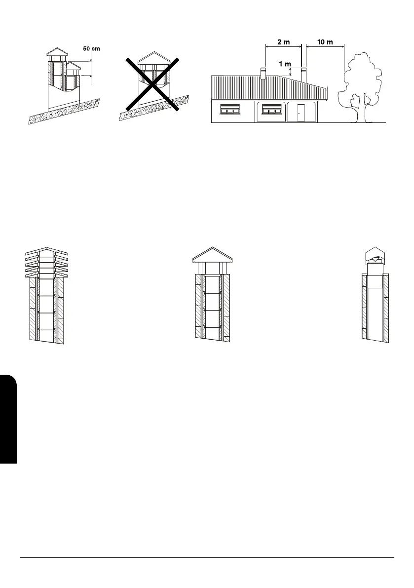 • Deve essere costruito in modo da impedire la penetrazione di pioggia nella canna fumaria, neve o qualsiasi corpo estraneo e strano e