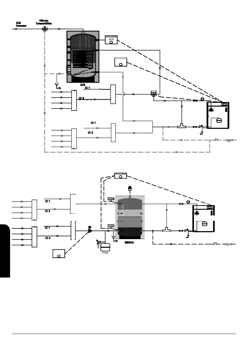 • Caldaia + Serbatoio di ACS + Circuito di Radiatori / Circuito di Riscaldamento a Pavimento