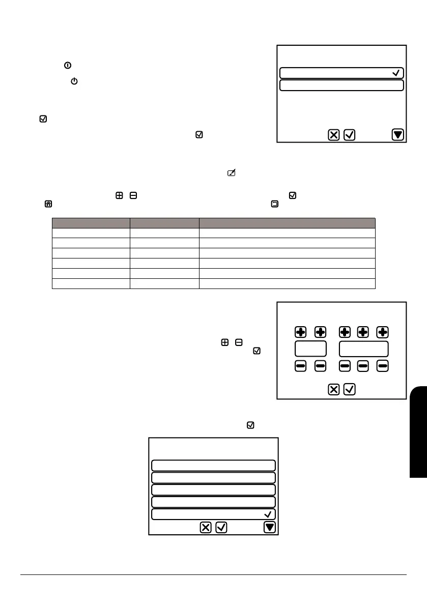 rispettivamente aumentando o diminuendo il valore e confermare il valore con il tasto .