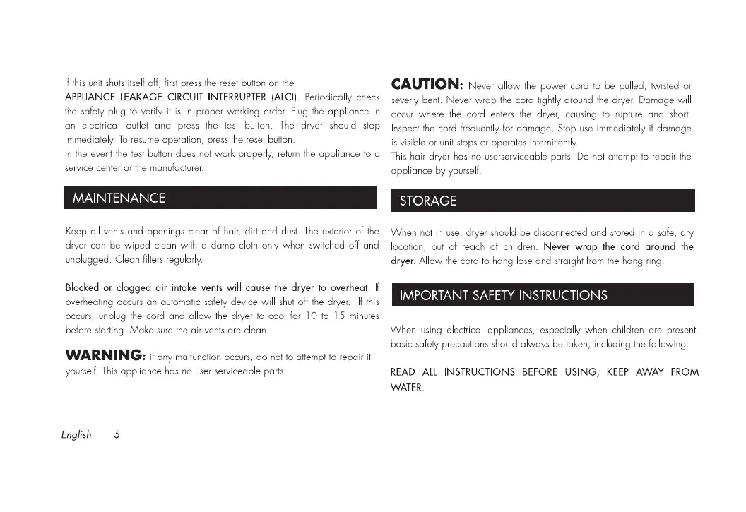 Thishairdryer hasno userserviceabeparts.Do notattemptto repairthe