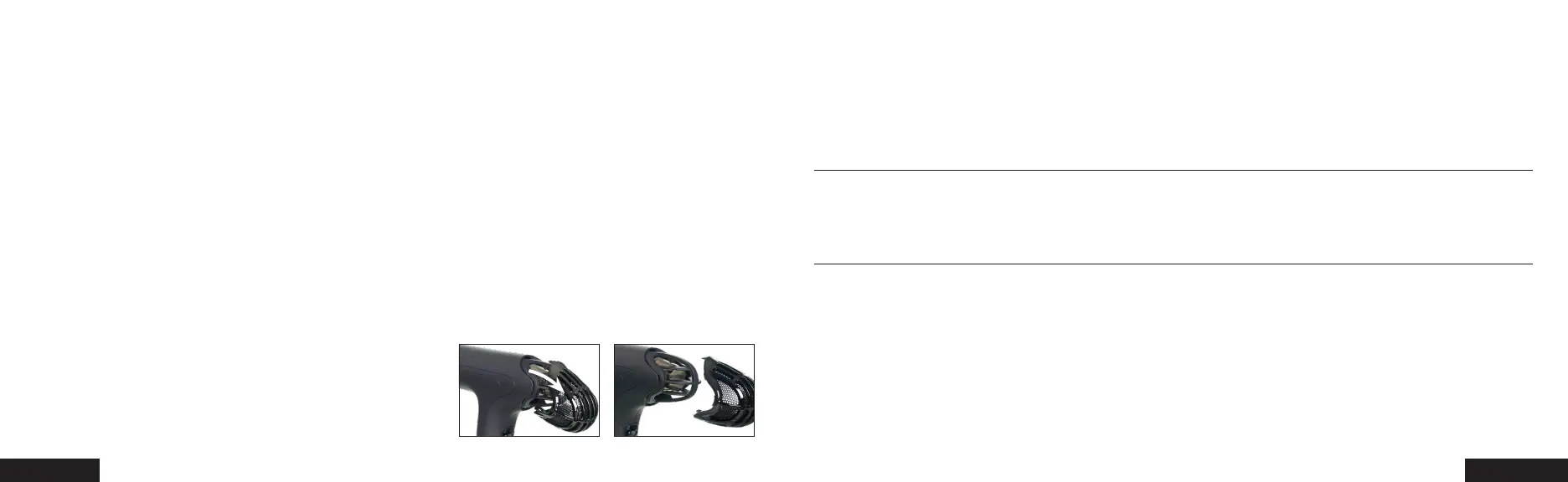 Procédé de l’entretien automatique : Brancher le sèche-cheveux et enfoncer le bouton « Speed lower » (Réduction de la puissance) pendant environ 10 secondes.