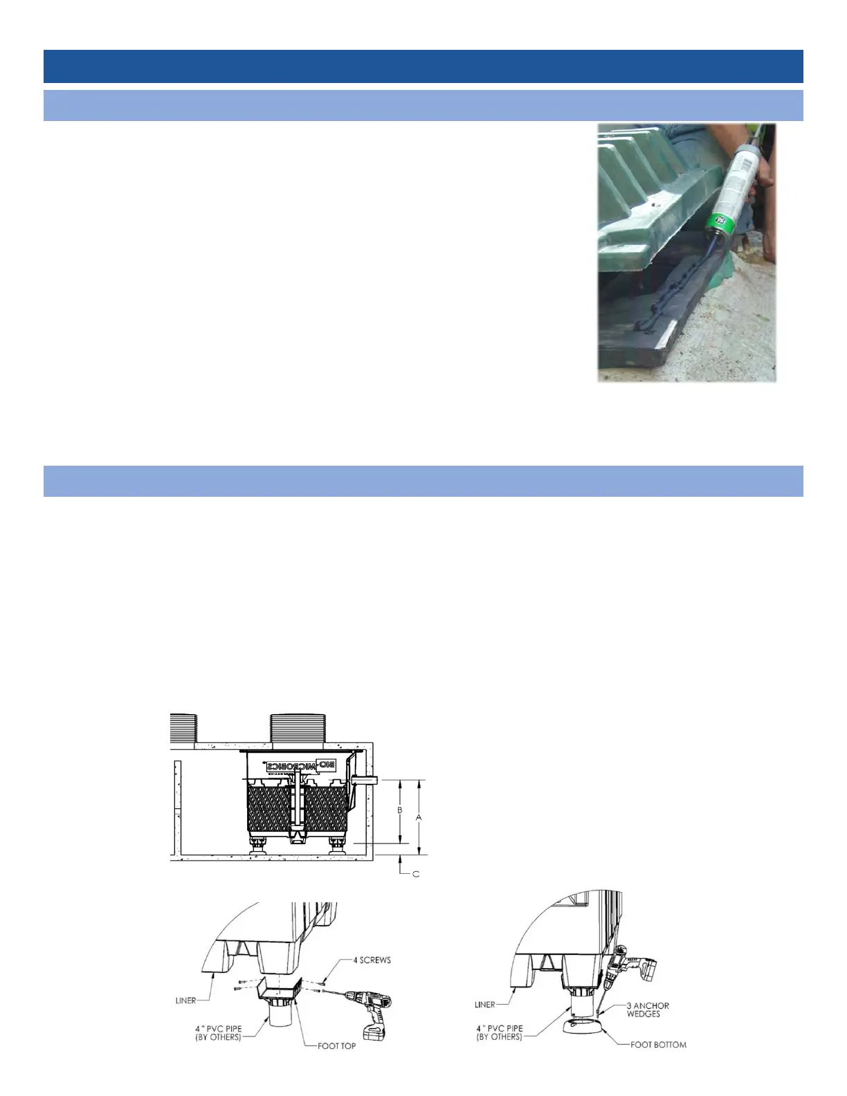 of the liner. Secure foot bottom to the base of the tank with stainless steel anchor bolts (not provided).