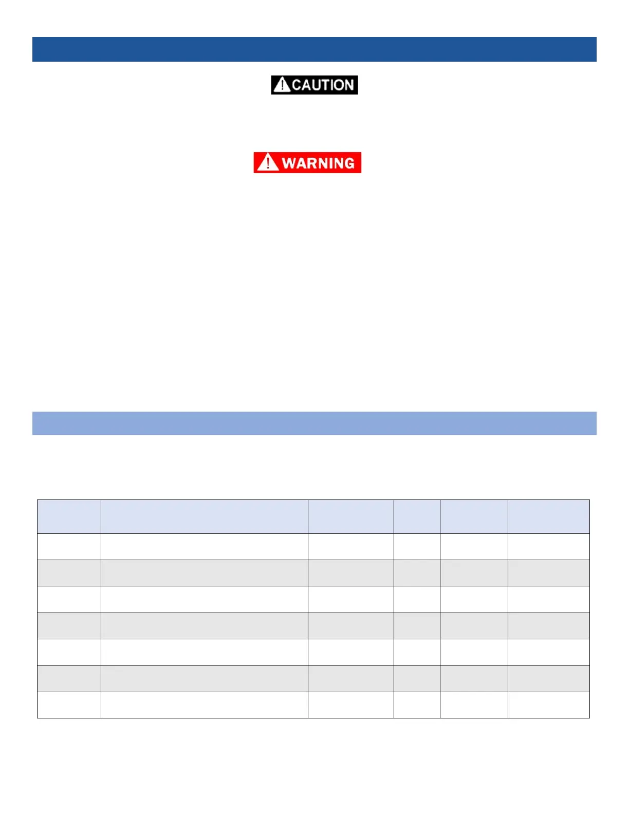 power requirements of the blower. The table below summarizes the control panel details for the various configuration