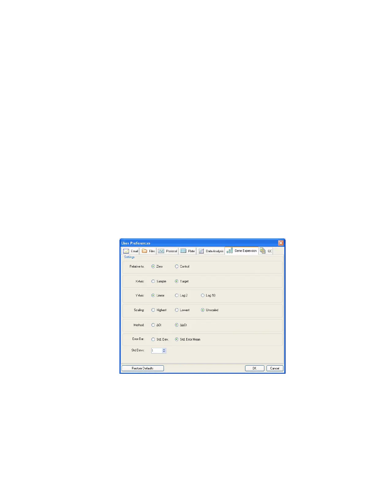 Select the Gene Expression tab in the User Preferences window to specify the default