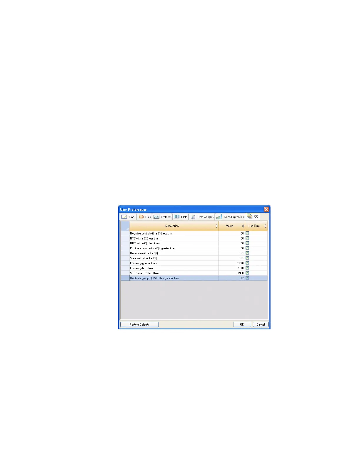Figure 118. QC tab in User Preferences.