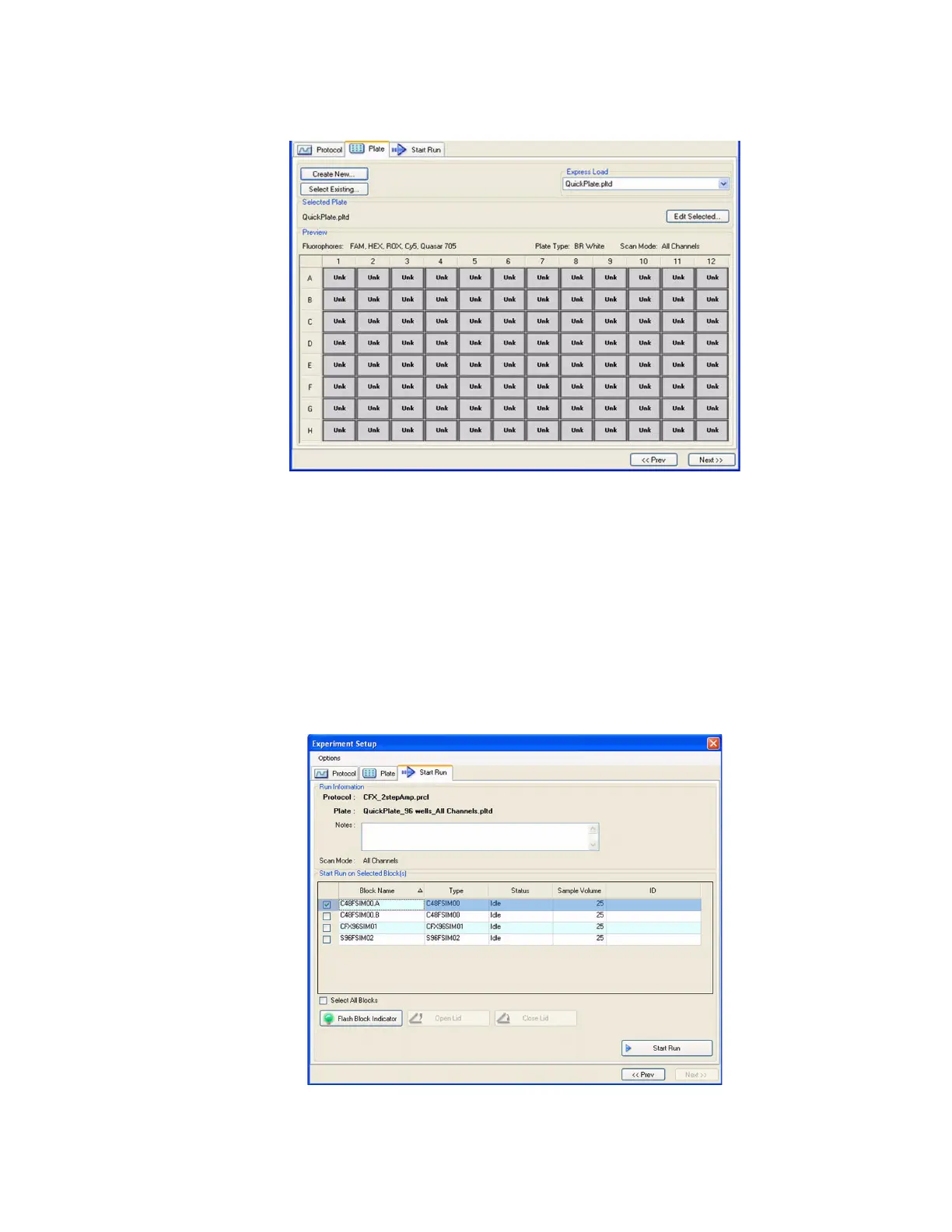 • Run Information pane. View the selected Protocol file, Plate file, and data acquisition