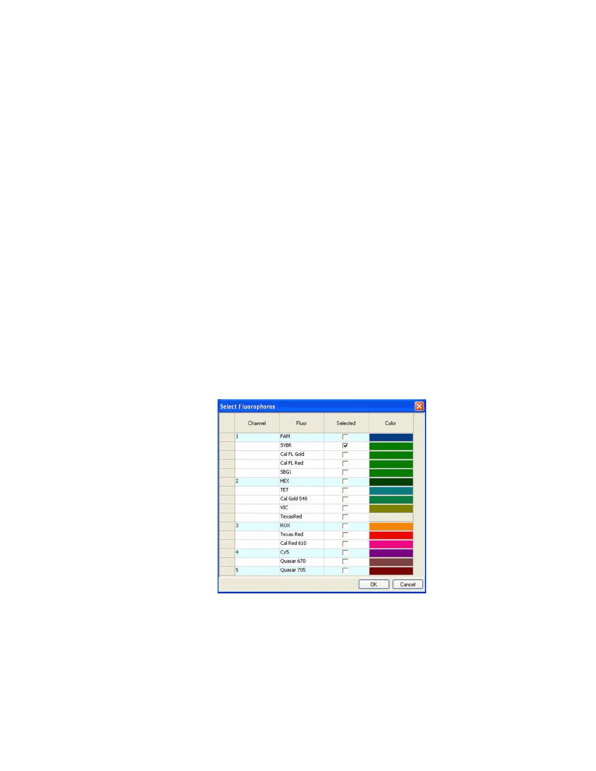 In this example, SYBR is selected from the list of available fluorophores (Figure 40).