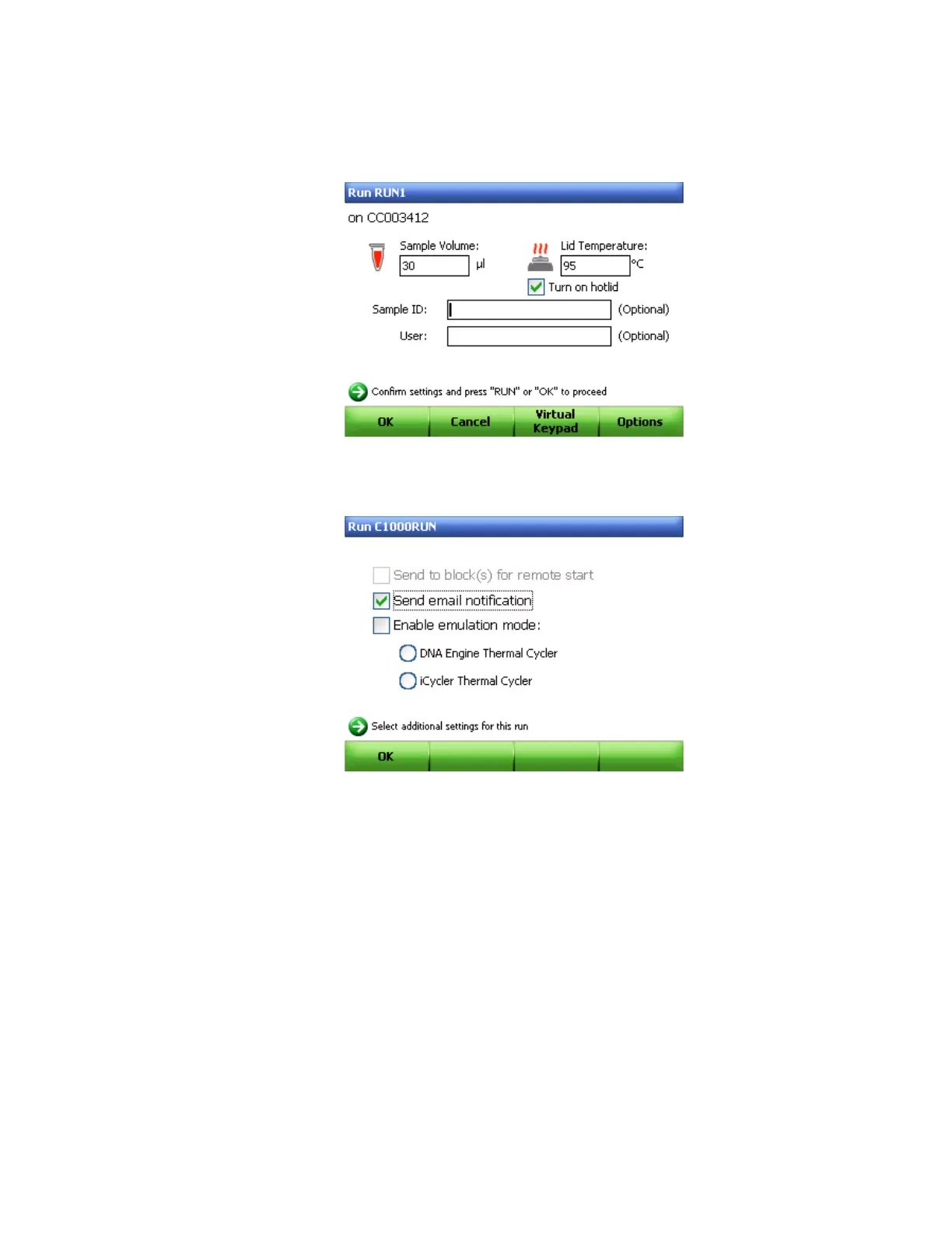 3. Click OK (F1) to return to the Run information screen.