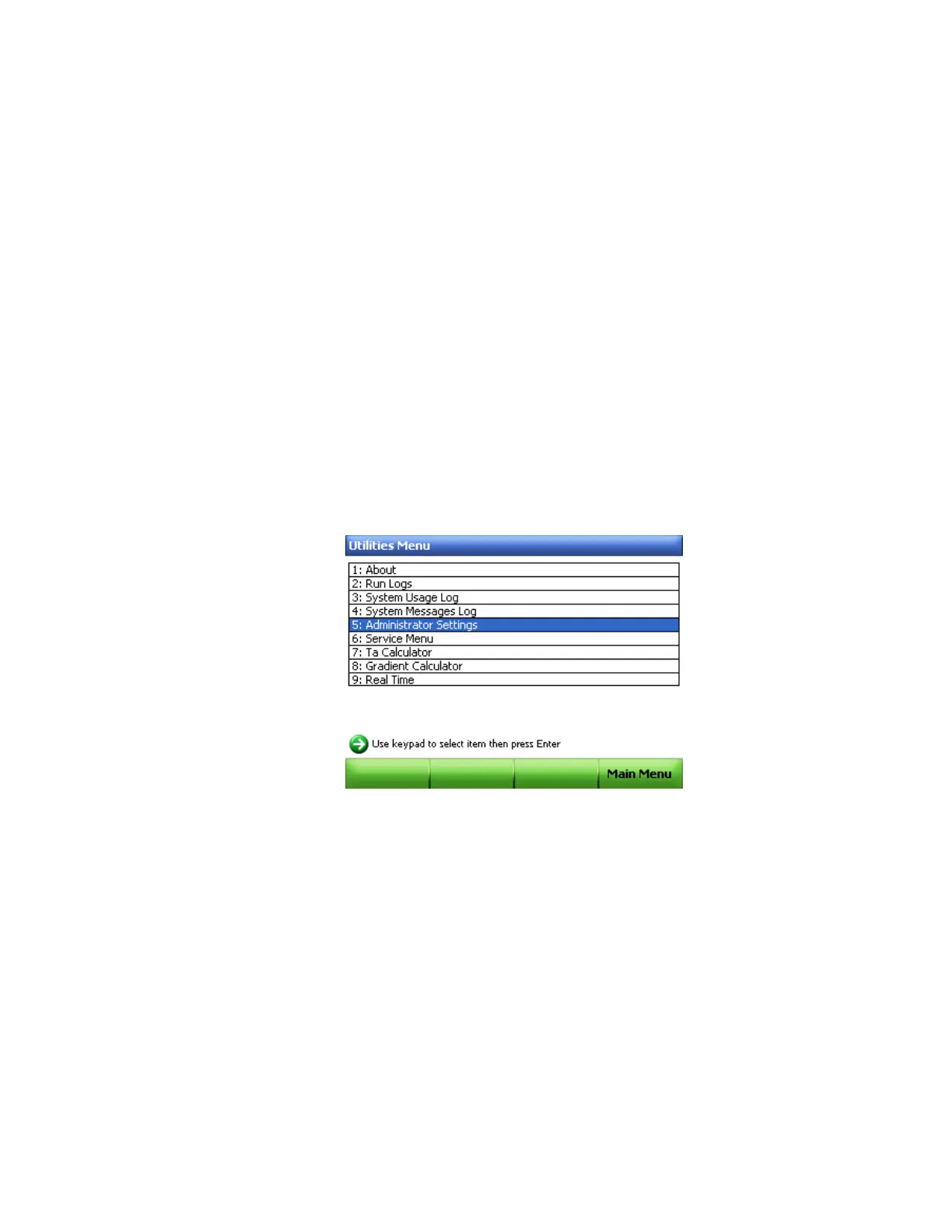 4. In the Utilities Menu, select 5: Administrator Settings (Figure 62).