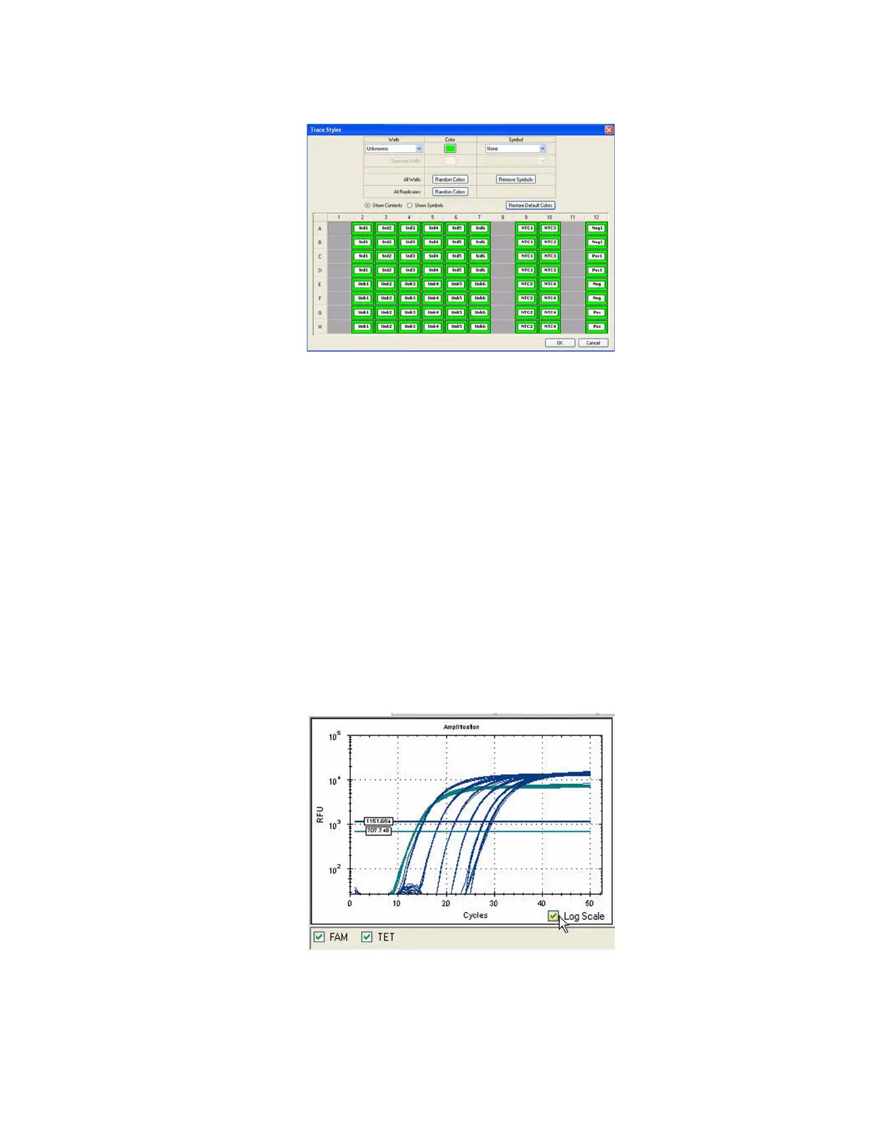 Click the Log Scale box at the bottom of the Amplification chart to view the fluorescence