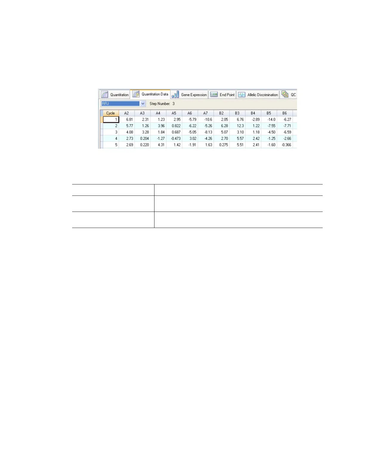Figure 87. RFU spreadsheet in the Quantitation Data tab.