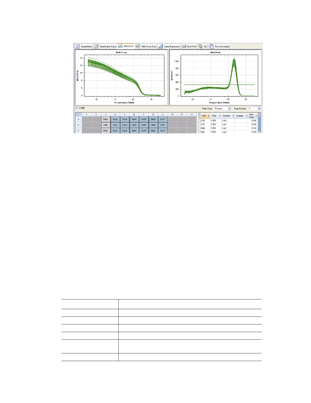 Figure 88. Layout of the Melt Curve tab in the Data Analysis window.