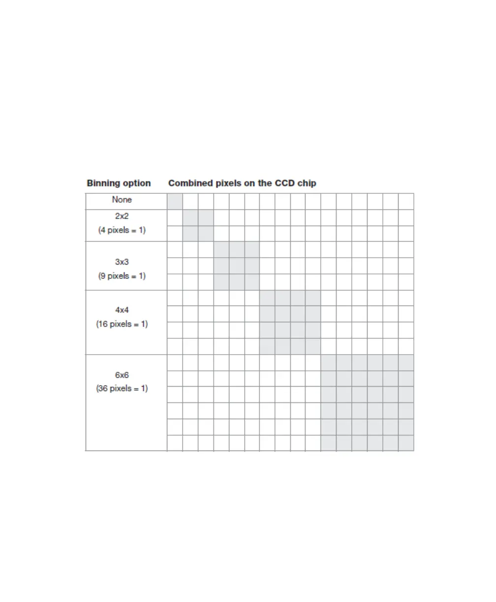 pixel. A binning of 3x3 means that 9 pixels are combined into one, 4x4 means that 16 are