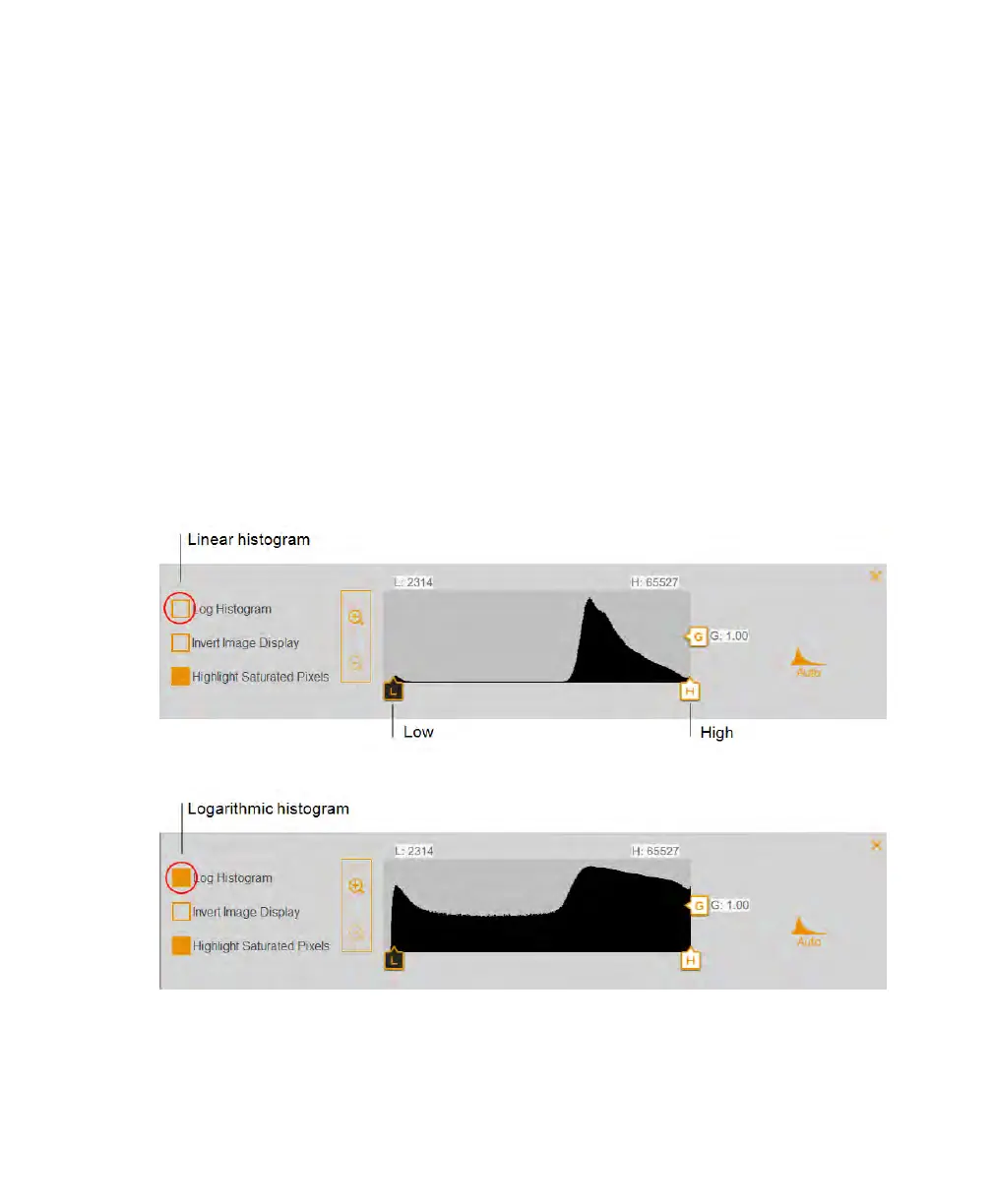 2. Tap the Log Histogram box to choose the logarithmic scale.