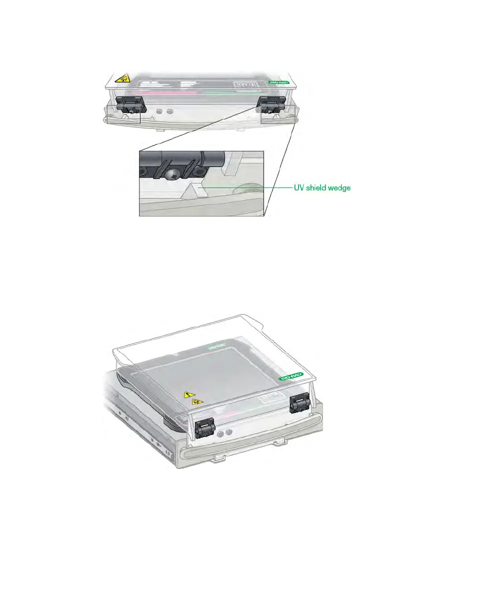 5. Ensure that the two wedges on the front of the UV shield snap into position on the